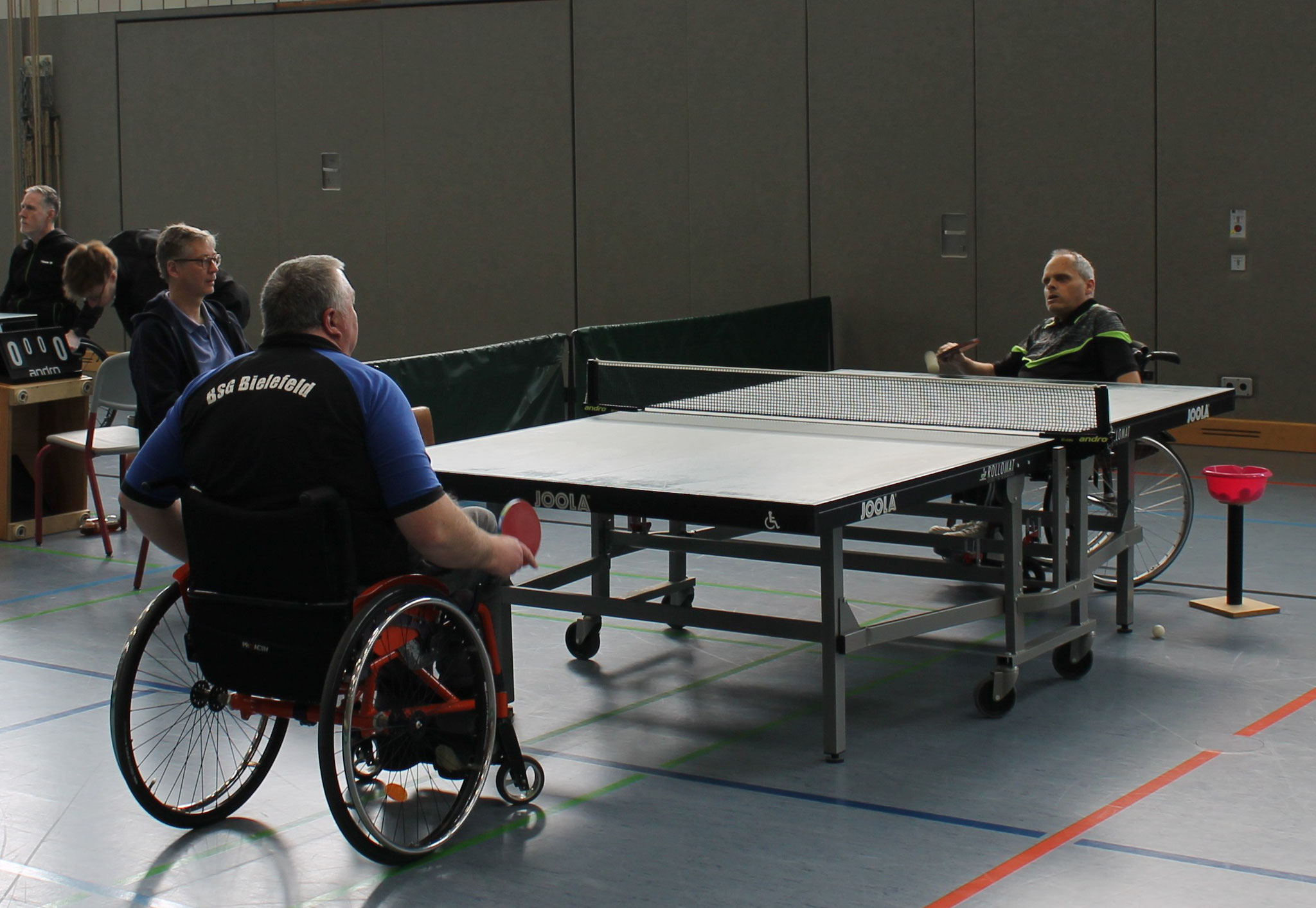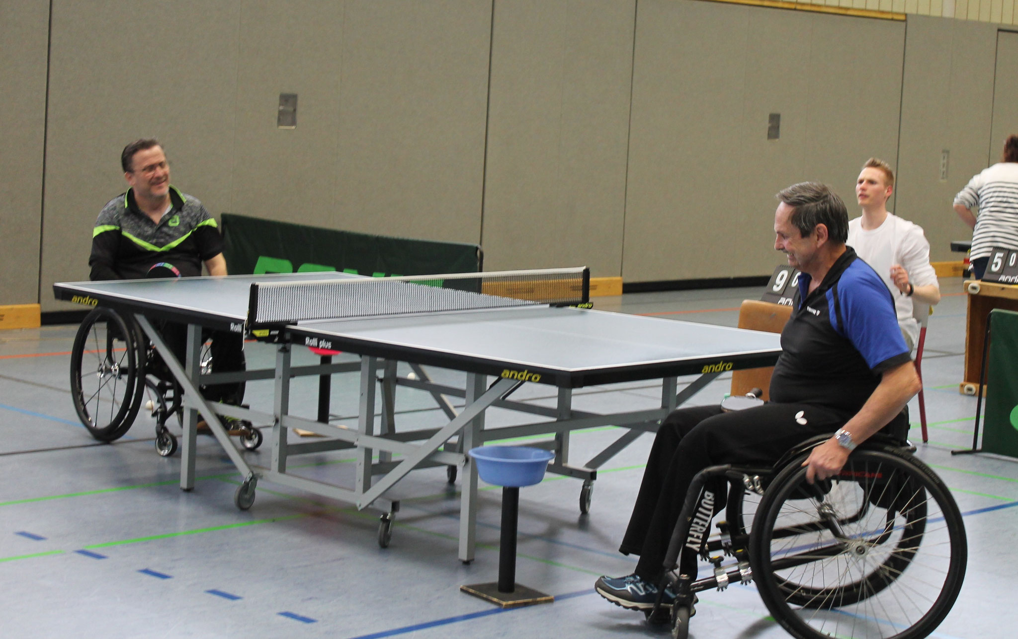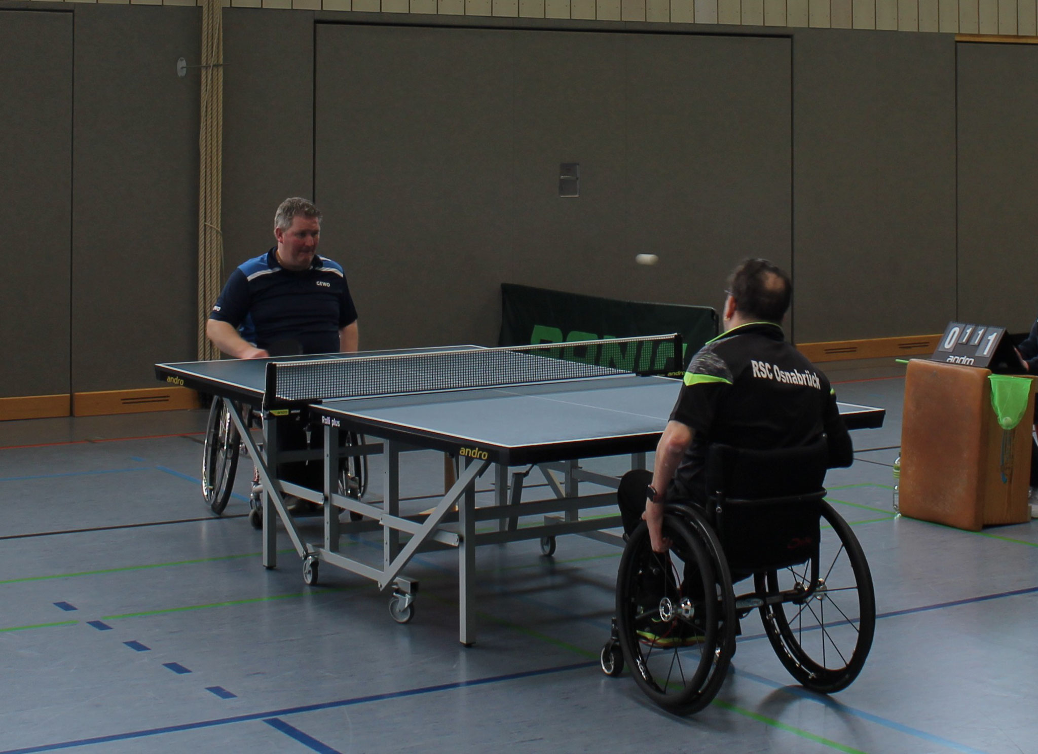 Zeitgleich lief die Partie Tobias Rupprecht gegen Harald Brase, dort stand es zwischenzeitlich 1:1 nach Sätzen. Beide RSC-Spieler kämpften bis zum Umfallen. Tore Schwefer konnte die nächsten beiden Sätze mit 11:3 und 11:4 gewinnen und holte damit nicht nur den erlösenden dritten Punkt – der Niedersachse gewann endlich zum ersten Mal gegen Shabani – sondern machte damit auch die Meisterschaft klar. Tobias Rupprecht verlor leider sein Einzel mit 1:3, was jedoch keine Rolle mehr spielte. Am Ende gewann der RSC mit 3:2 – und damit die erstmalige Meisterschaft der 2. Bundesliga Nord. Der Verein ist damit aufstiegsberechtigt in die 1. Bundesliga im Rollstuhl-Tischtennis.